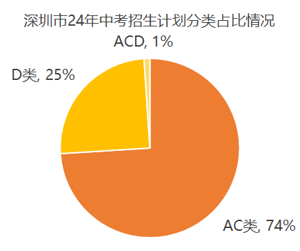 以2024年为例,公办高中学位中,AC类占74%,D类占25%,ACD类占1%。从往年数据来看,非深户的报考学生约有五成有余,但名额分配却相对较少,此高彼低(报考学生占比高但名额分配低),可见非深户竞争激烈程度。非深户想要就读头部学校,还得比深户同学付出更多的努力。