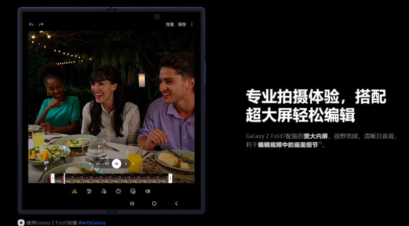 Galaxy Z Fold7是“重度使用者的全能伙伴”——追求专业影像创作、多任务办公、大屏沉浸体验的用户,将在8英寸内屏与2亿像素影像系统中找到生产力答案;